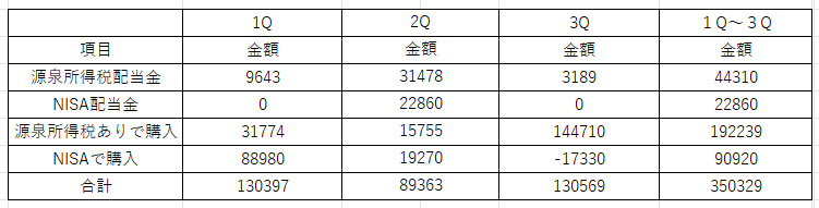 もう10月になり3Qの利益確定の時期になりました。SBI証券のプログラムにMY資産の項目ができ、これを使用すると簡単に集計することができました。今までの1Qと2Qも再度確認したところ、少し違いがあり修正しました。3Qは、配当金が3,189円、源泉所得税ありの利益が144,710円、NISAが-17,730円となりました。NISAがマイナスになったのは、リソー教育を500株購入するつもりが、売却を間違えてスマホをタップしたためでした。70歳になり、頭も体も経年劣化しています。ひとつひとつの動作は、確認しながらやらないといけません。情けない状況になりました。日経平均が45754.93まで上昇したので、合計35万円の利益はいかがでしょうか?しょぼくれ投資としては、反省の多い年になりそうです。